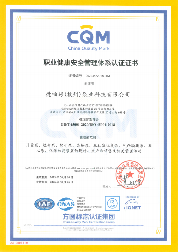 德帕姆(杭州)泵業(yè)科技有限公司地處國家級(jí)經(jīng)濟(jì)技術(shù)開發(fā)區(qū)所在地——杭州錢塘區(qū),成立于2003年,是一家集研發(fā)、生產(chǎn)、銷售于一體的高新技術(shù)企業(yè)。主要產(chǎn)品有計(jì)量泵(柱塞/機(jī)械/液壓)、高壓過程往復(fù)泵(柱塞/隔膜/管式)、電動(dòng)隔膜泵、氣動(dòng)隔膜泵、加藥裝置、水汽取樣裝置、超臨界流體設(shè)備、水處理設(shè)備等。旗下?lián)碛锌四崃_瓦(杭州)工業(yè)設(shè)備有限公司及戴勒普(杭州)流體控制科技有限公司兩家子公司??四崃_瓦主要生產(chǎn)高端螺桿泵(單/雙/三)、轉(zhuǎn)子泵(金屬/橡膠)、齒輪泵等產(chǎn)品。戴勒普主要生產(chǎn)高端離心泵系列產(chǎn)品。