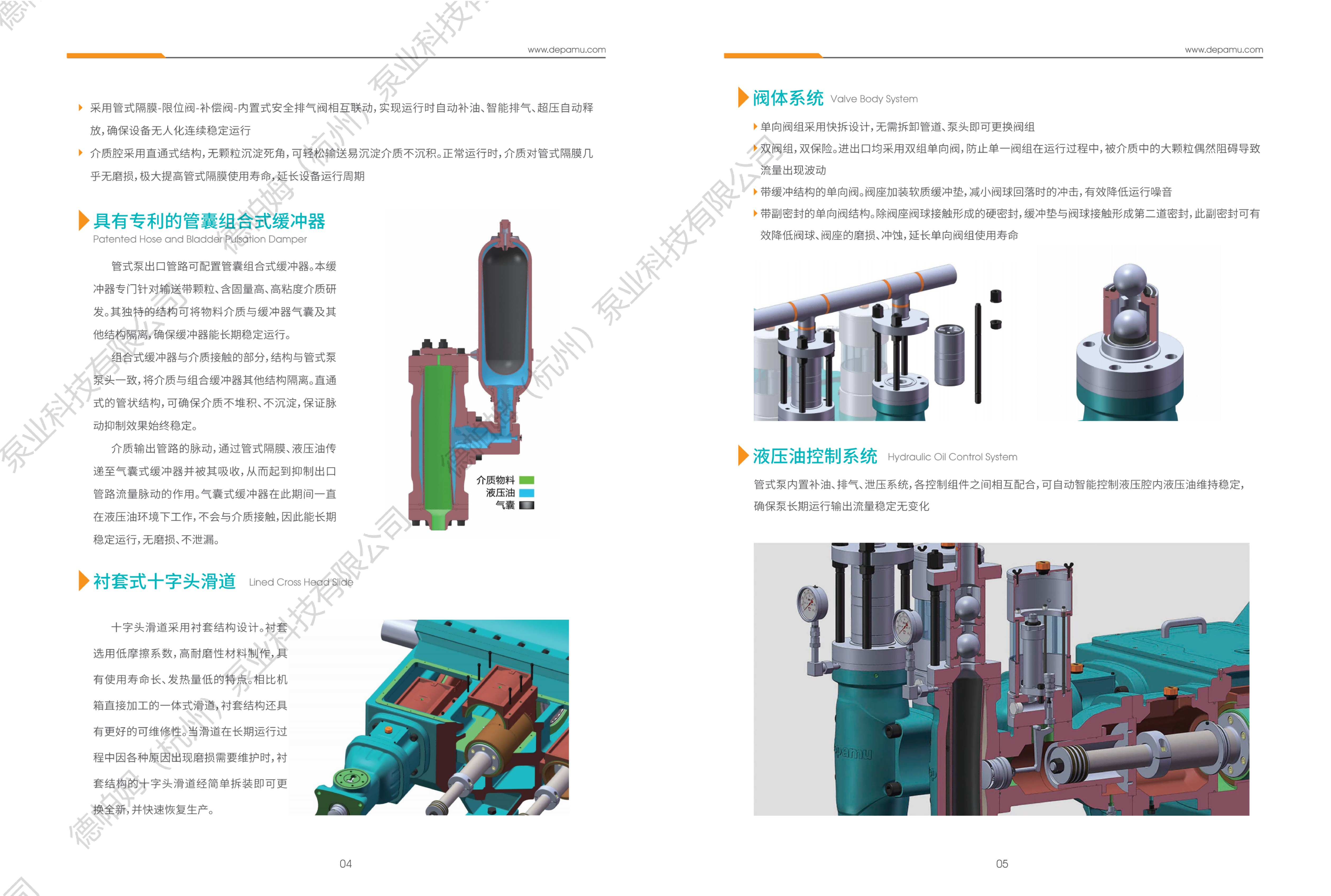 德帕姆高壓過(guò)程管式泵國(guó)內(nèi)首創(chuàng),按照國(guó)際API674標(biāo)準(zhǔn)設(shè)計(jì)。該泵擁有6項(xiàng)發(fā)明專利,20余項(xiàng)實(shí)用新型專利。具有完全無(wú)泄漏、輸送平穩(wěn)、使用壽命非常長(zhǎng)的特點(diǎn)。產(chǎn)品在含固量80%以下,壓力25MPa內(nèi),溫度120度以內(nèi)均可長(zhǎng)期穩(wěn)定運(yùn)行。 適用于水煤漿、 礦漿、廚余垃圾處理等含固量高、顆粒較大、易沉淀等漿料工況應(yīng)用。